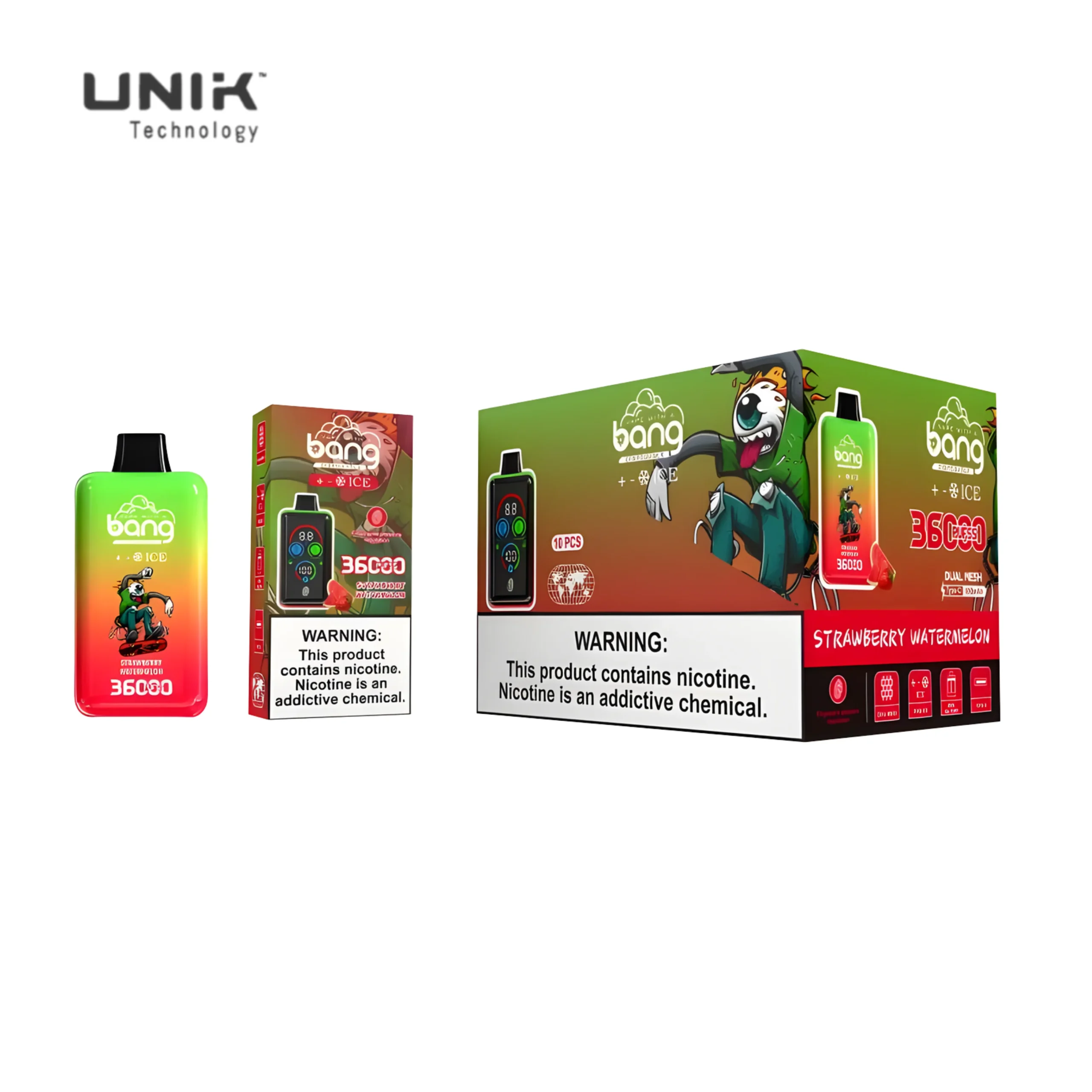 Bang 36000 Puffs Smart Full Screen Turn Ice Wholesale Disposable Vape , offered by UNIK Tech, is a very popular e-cigarette device known for its excellent performance.This device provides an unbeatable vaping experience. This vape caters to a wide range of users, providing options for both nicotine enthusiasts and those seeking a nicotine-free experience.